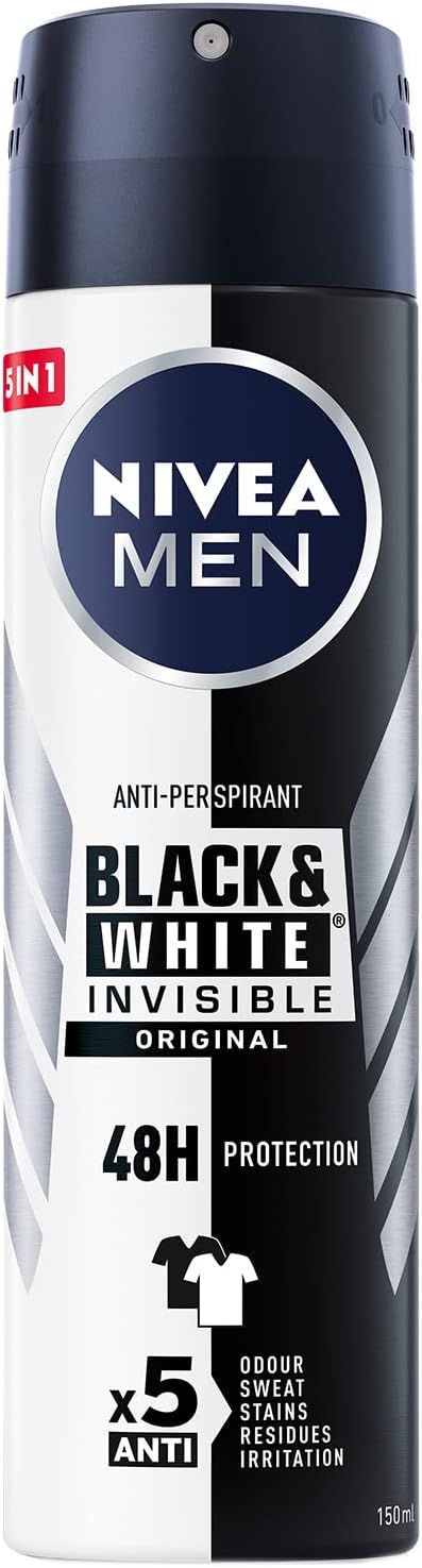 Formulated with a reliable 48hour antiperspirant protection, NIVEA MEN Black & White Invisible Original Antiperspirant Deodorant leaves your skin feeling clean and fresh while keeping away sweat and body odour.